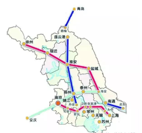 6月初,中国铁路总公司与江苏省人民政府联合批复了苏南沿江铁路的可行性研究报告。根据批复,项目采用双线高速铁路技术标准,速度目标值为350公里/小时,正线长度为278.33公里,全线共设南京南、句容、金坛、武进、江阴、张家港、常熟、太仓等8座车站,投资总额为500多亿元,该项目计划9月底前开工建设。